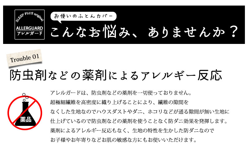 ※厚み 約20〜25cmのマットレスに対応可能アレルガードは、防虫剤などの薬剤を一切使っておりません。